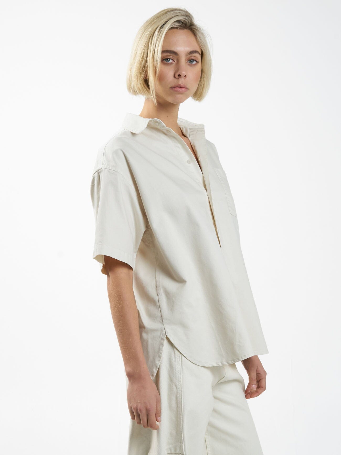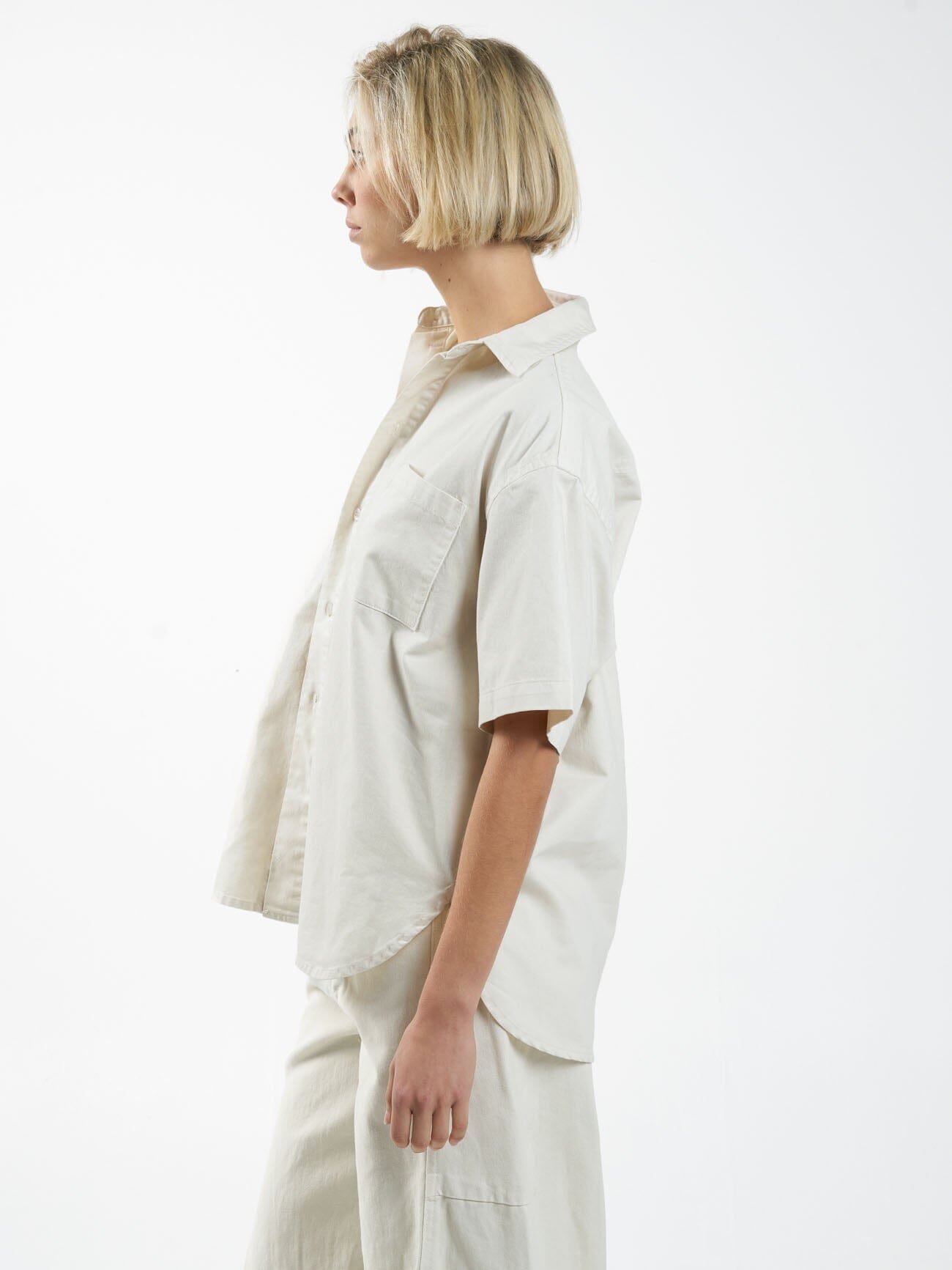 Meet the Eliza Denim Shirt in Bone – a timeless button-up to elevate any outfit. Featuring a super relaxed fit with a collar and full button closure. you’ll love to wear it as is or layered on your favorite tee. It is crafted from organic cotton denim in a vintage-inspired colourway that can go from trend to trend.