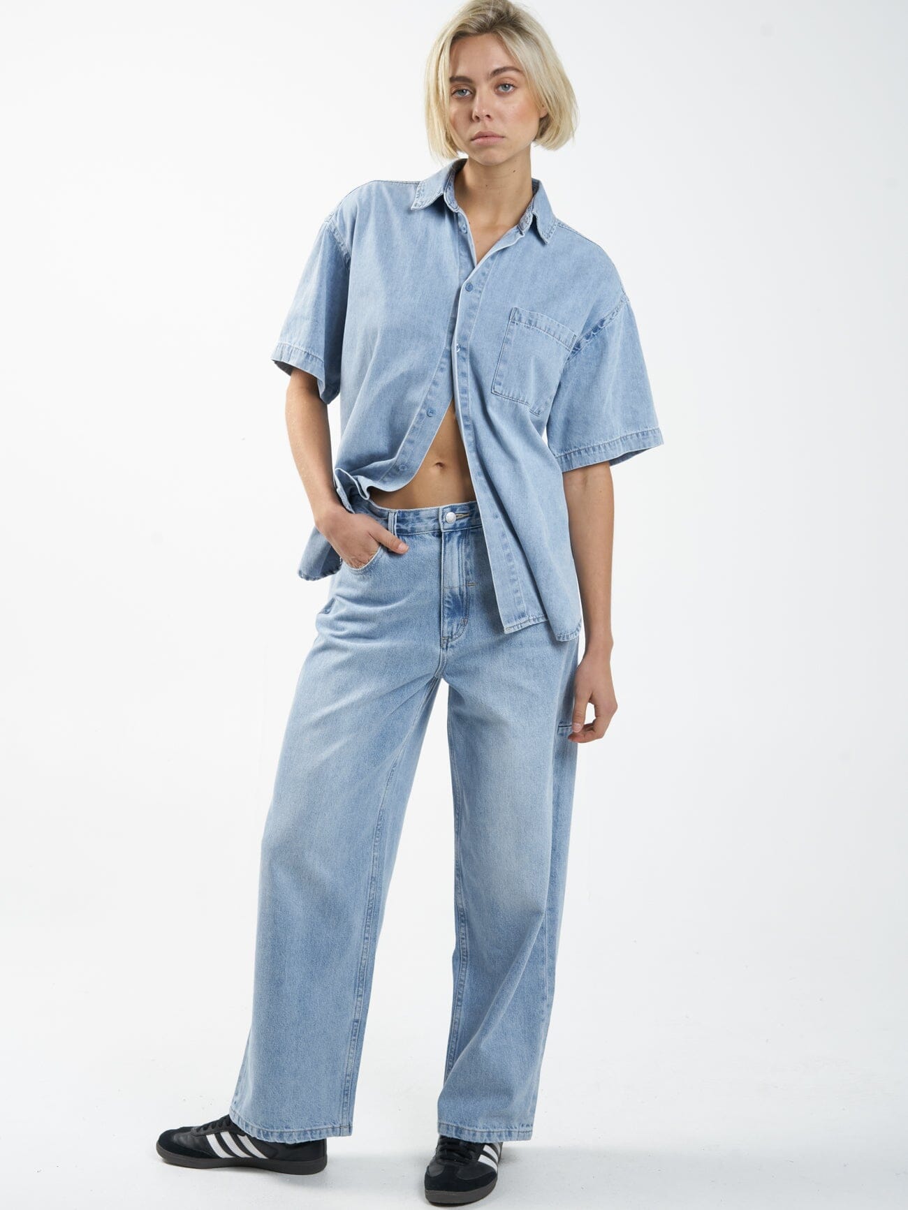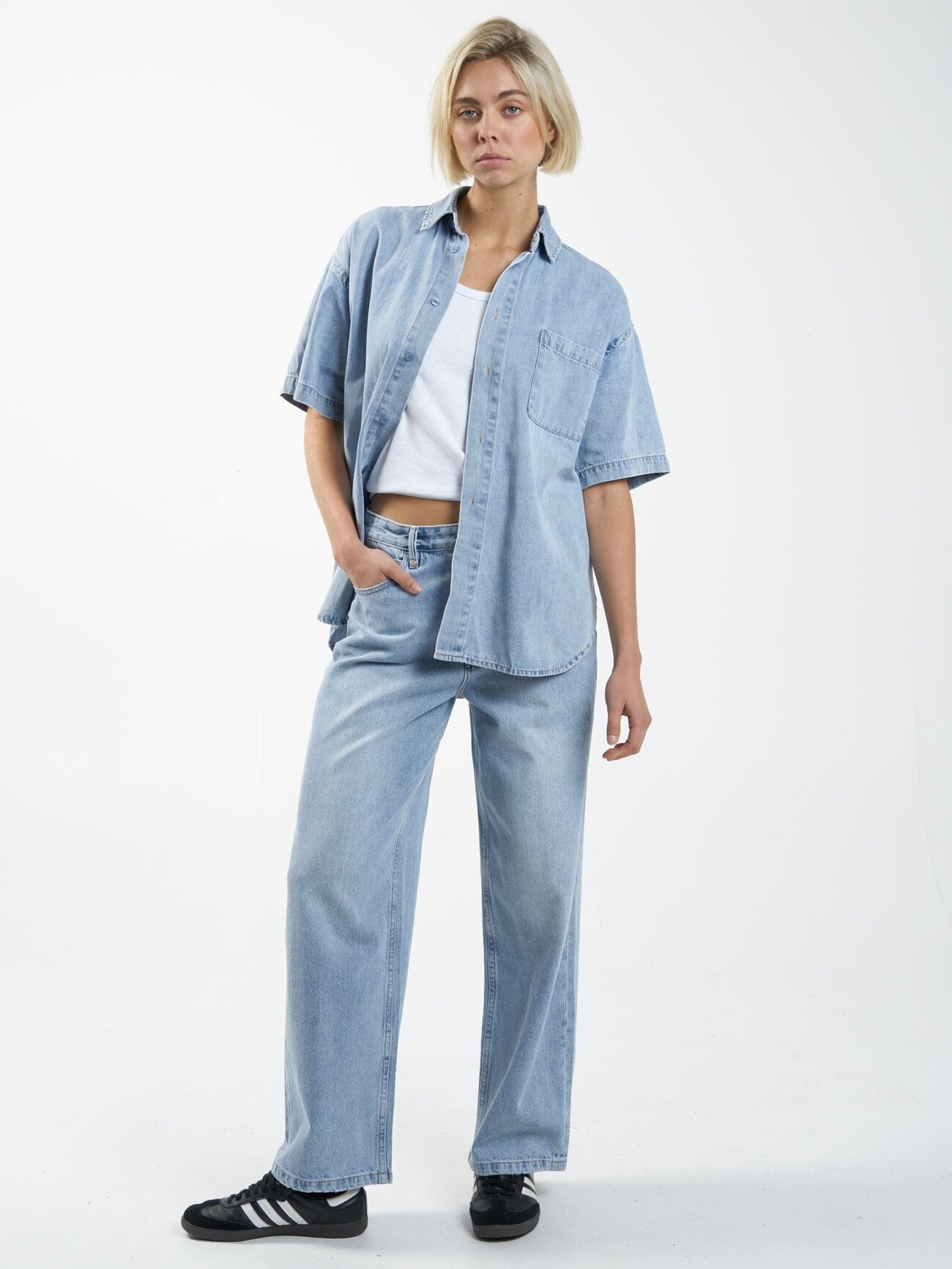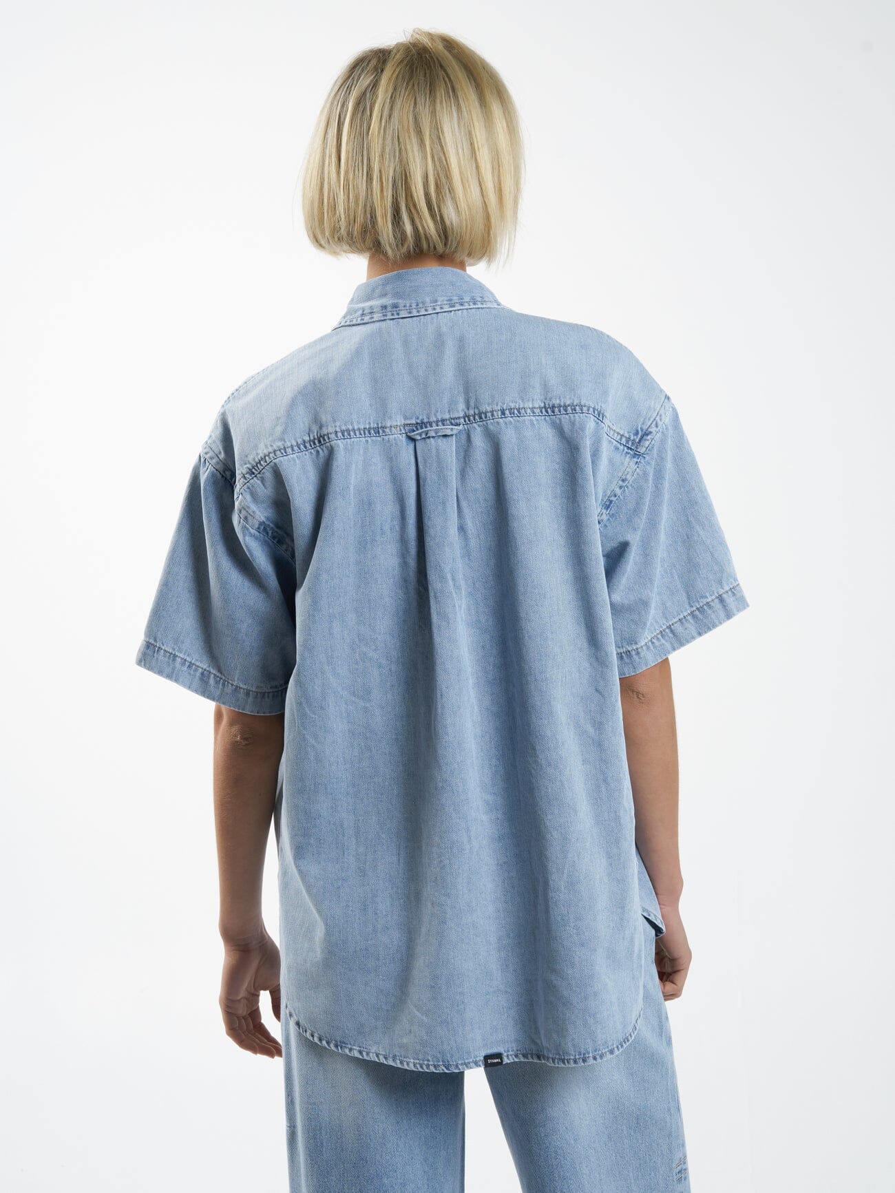 Designed to be a wardrobe staple. this Eliza Denim Shirt in Endless Blue bears classic features including a collar. a front pocket and an overall relaxed fit you can wear every day. Made with organic cotton denim. it offers durability but is still lightweight enough for layering. Available in a vintage-inspired wash. this denim shirt is both timeless and trendy.
